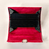 چرم ورنی زرشکی جلوهای لوکس و خاص به محصول داده و آن را به یک اکسسوری چشمگیر در کیف یا دست شما تبدیل میکند. همچنین وجود قفل نیکل محکم باعث میشود کارتها در نهایت امنیت نگهداری شوند و از افتادن یا خم شدن آنها جلوگیری شود.