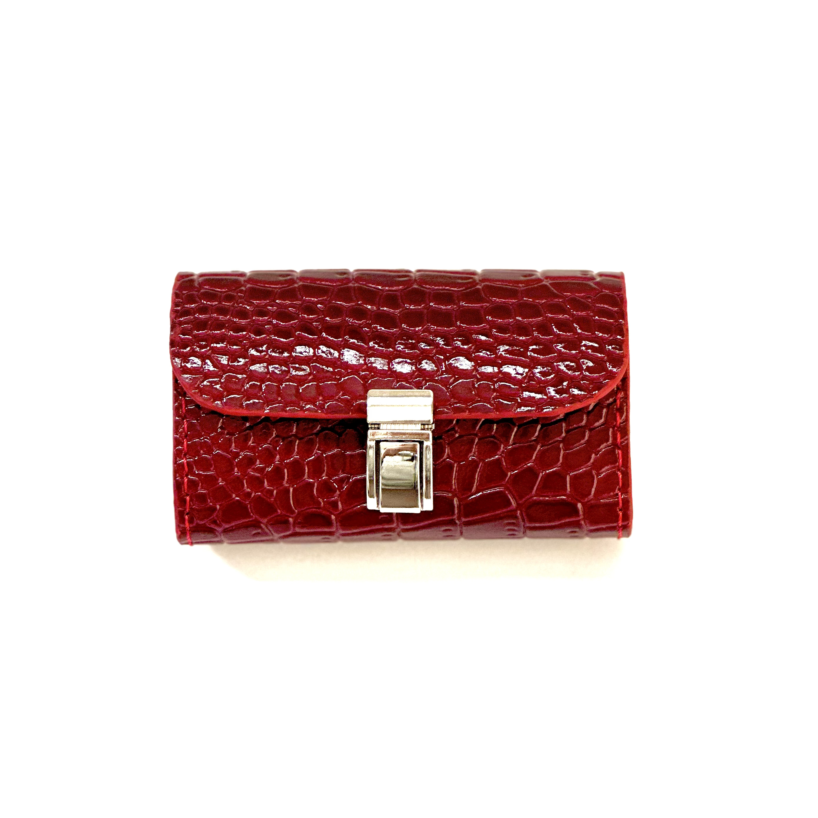 جاکارتی چرم طبیعی آکاردئونی قفلی ورنی زرشکی