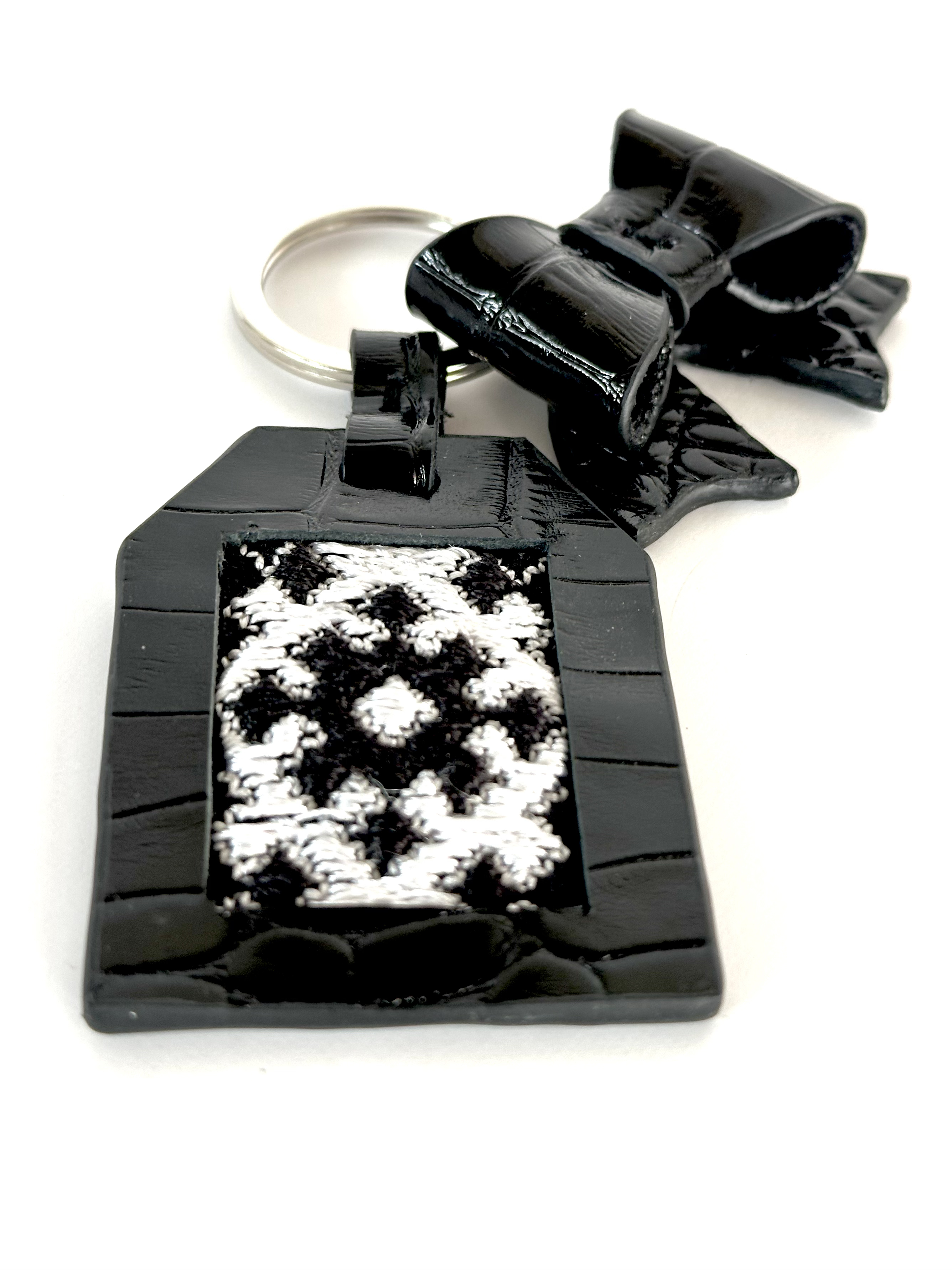 جاکلیدی چرم طبیعی سوزندوزی بلوچی مشکی کروکو