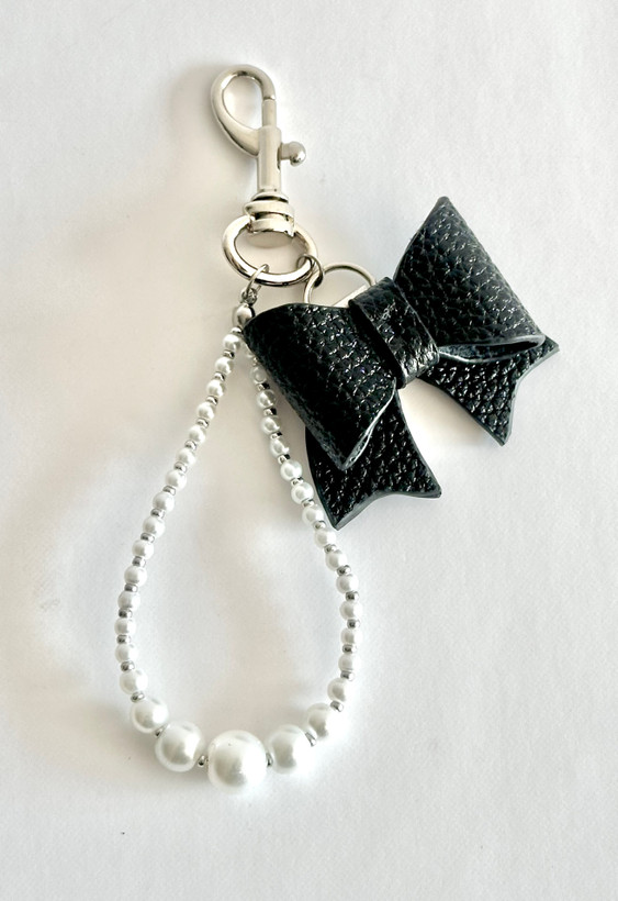 جاکلیدی پاپیونی چرمی با آویز مروارید – ظریف، شیک و چشمنواز