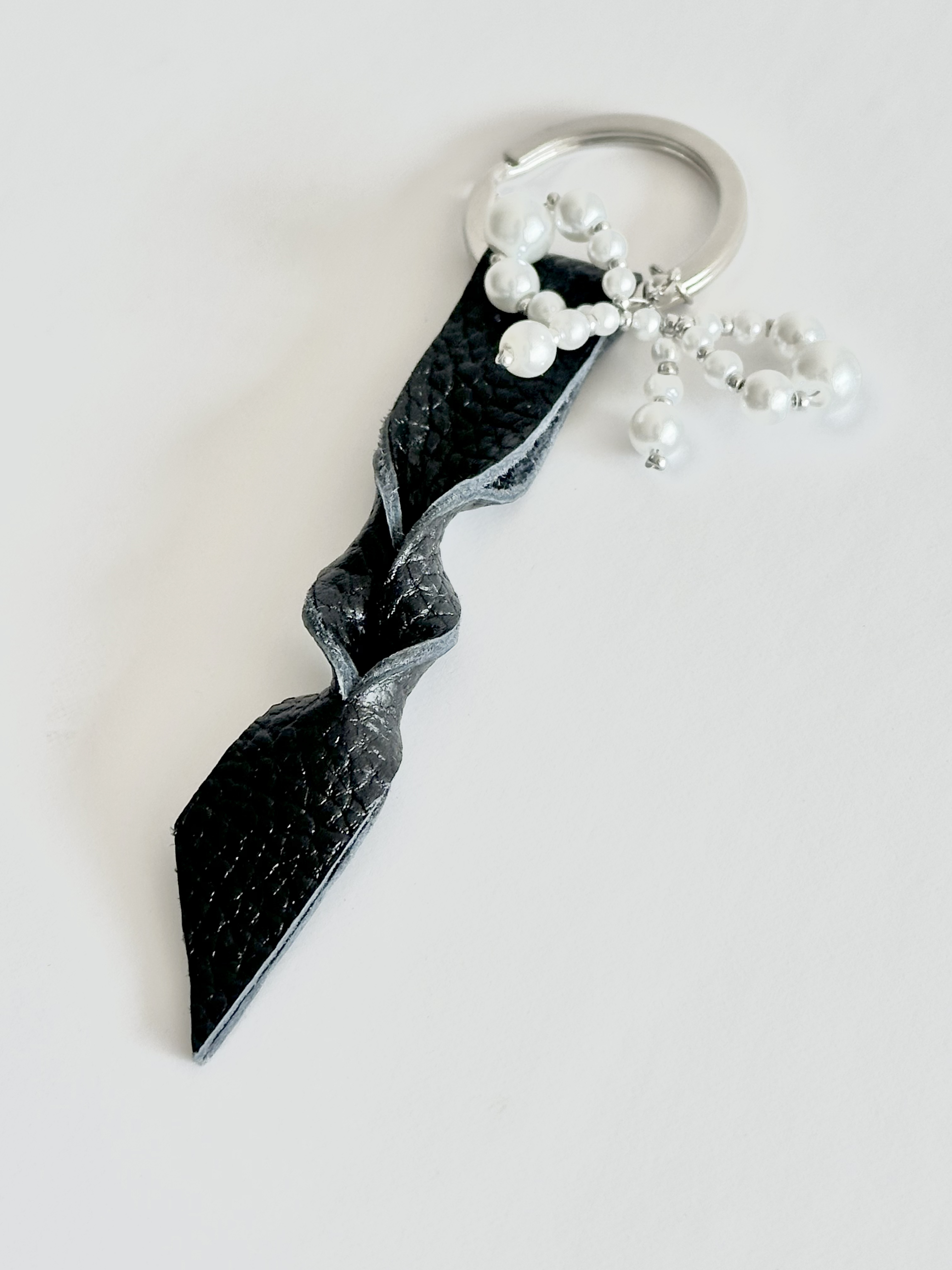 جاکلیدی چرمی بافت گیسو با پاپیون مرواریدی – ظرافتی خاص در کوچکترین جزئیات